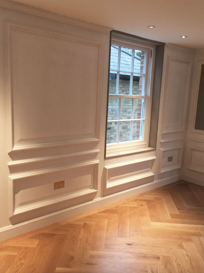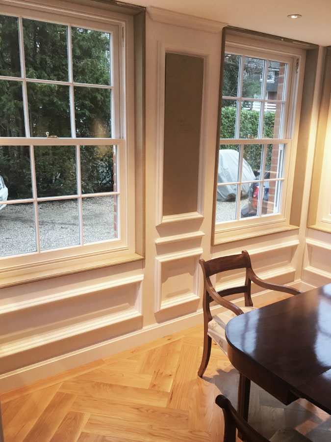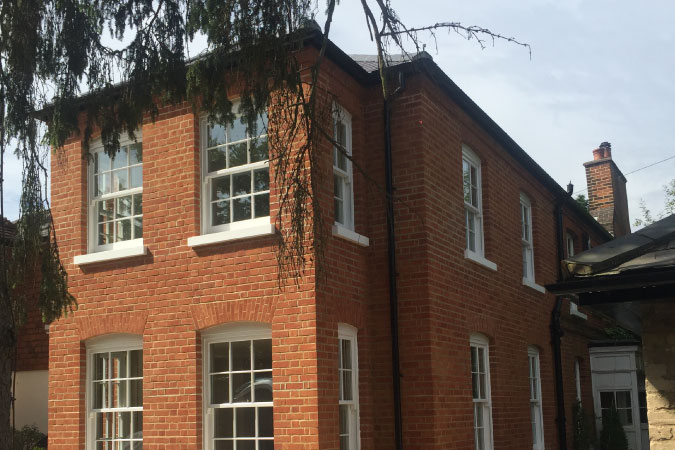 To carry out two large extensions to the period property, the ground floor extension consisted of the removal of the old garage block and the construction of a larger outbuilding in the same design as the main house with an interconnecting corridor. This building was to house the new Gym area and storage area. The main house consisted of a two-storey extension to the front and side facades, enlarging the upstairs bedrooms and downstairs dining areas. All brickwork was using period reclaimed bricks to match existing. Installation of new windows, again to match existing sash windows on the property; extension of the roof area using period clay tiles. To the basement area, we undertook the hacking off and tanking of the basement area, the introduction of a new staircase and a glass walkover light. All areas were decorated to the highest quality and to marry into existing finishes.