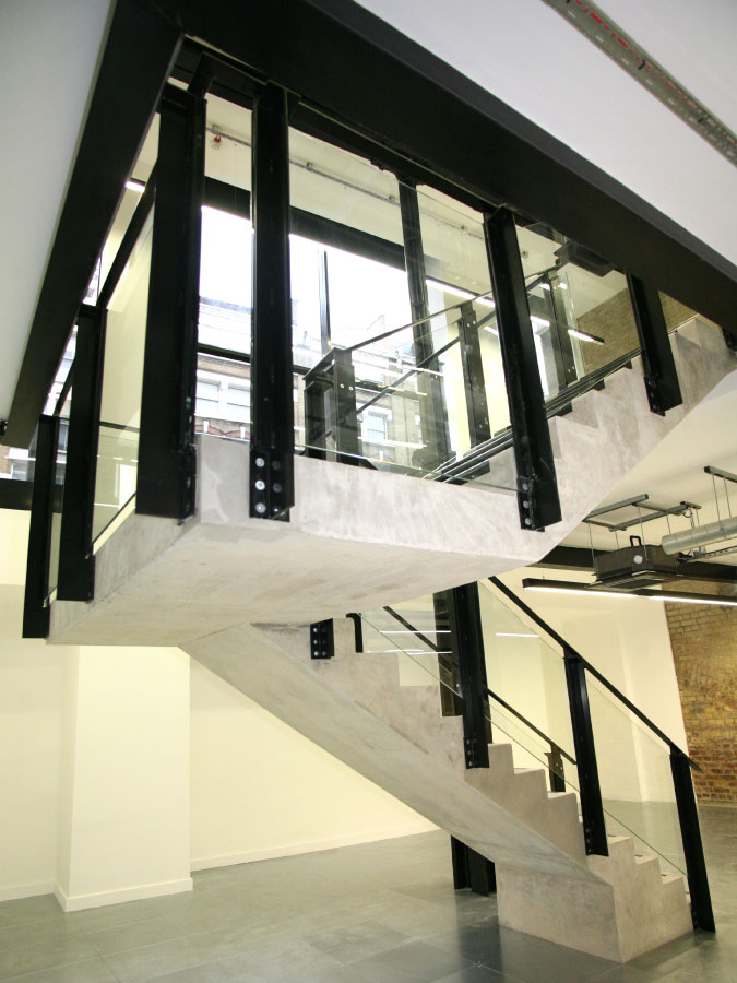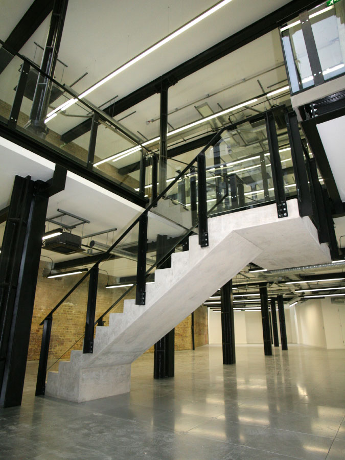 The building was in a dilapidated condition. The works comprised a new structural frame inside the building’s shell, primarily, to receive rooftop apartments at a later date. The design was sympathetic to the industrial heritage of the original building. This was achieved by designing open and exposed ceilings, including mechanical and electrical equipment, such as ventilation ducts, light fittings, etc. Materials, in their natural form, such as concrete stairs, copper reception desk, and exposed original brickwork walls, etc were used to celebrate the industrial feel.