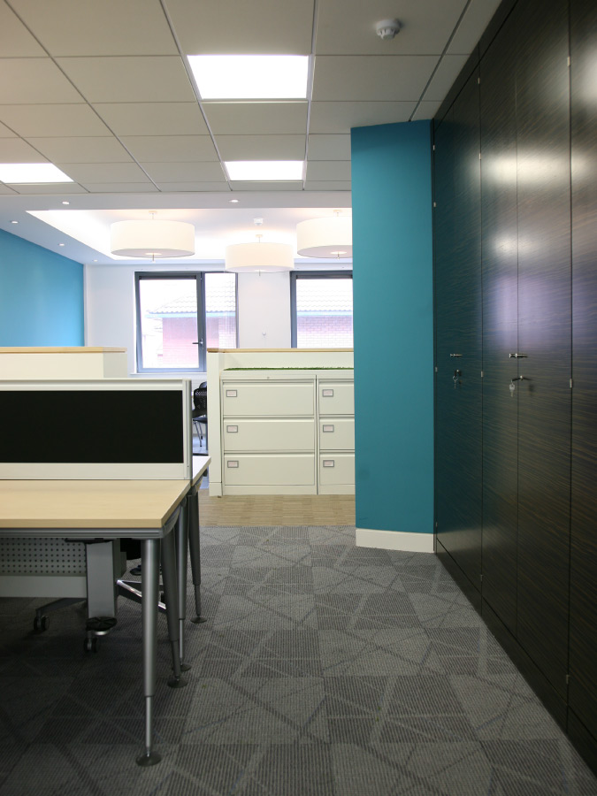 Strip out and refurbishment of the original first-floor office area to facilitate a new open-plan office area with cellular offices, a new reception area and a communal area.